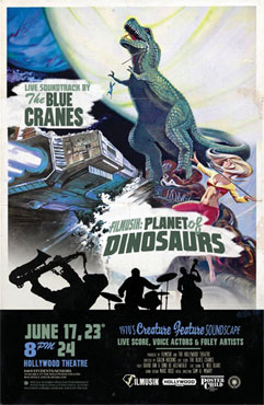 Sewallcrest Park (SE 31st Ave & Market St, Portland) performing an original live score for Filmusik's production of Planet of the Dinosaurs. FREE. All Ages. Starts at dusk.