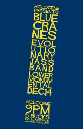 Wednesday, December 14~ BLUE CRANES @ Holocene